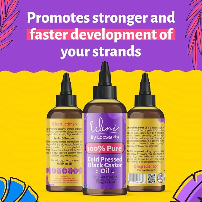 Locsanity Wini Pure 100% Cold Pressed Jamaican Black Castor Oil For Hair and Skin, 4 Fl Oz