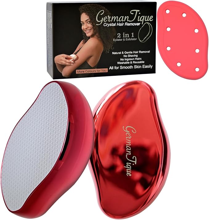 - AWAY FROM IRRITATION AND SLOW HAIR REGROWTH:Germantique crystal hair removal tool is a new generation of hair removal epilator. It can remove the hair without black dots easily and exfoliate dry skin cells with gentle glide which leaves skin soft and silky smooth .The hair can be evenly grabbed and neatly removed from the hair root when rubbing along the innovative circular patterns.No irritation,no fuss. It helps slow down and thinner hair regrowth after a regular use every two weeks