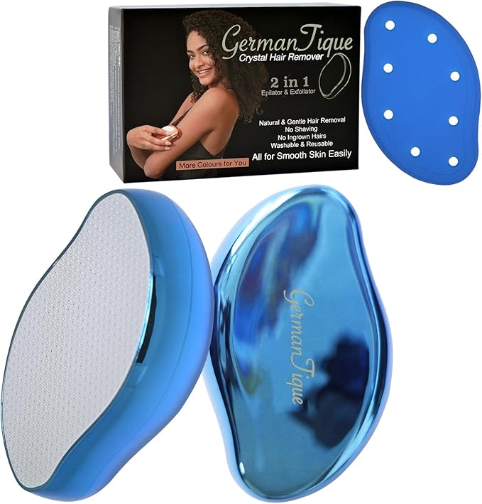 - AWAY FROM IRRITATION AND SLOW HAIR REGROWTH:Germantique crystal hair removal tool is a new generation of hair removal epilator. It can remove the hair without black dots easily and exfoliate dry skin cells with gentle glide which leaves skin soft and silky smooth .The hair can be evenly grabbed and neatly removed from the hair root when rubbing along the innovative circular patterns.No irritation,no fuss. It helps slow down and thinner hair regrowth after a regular use every two weeks