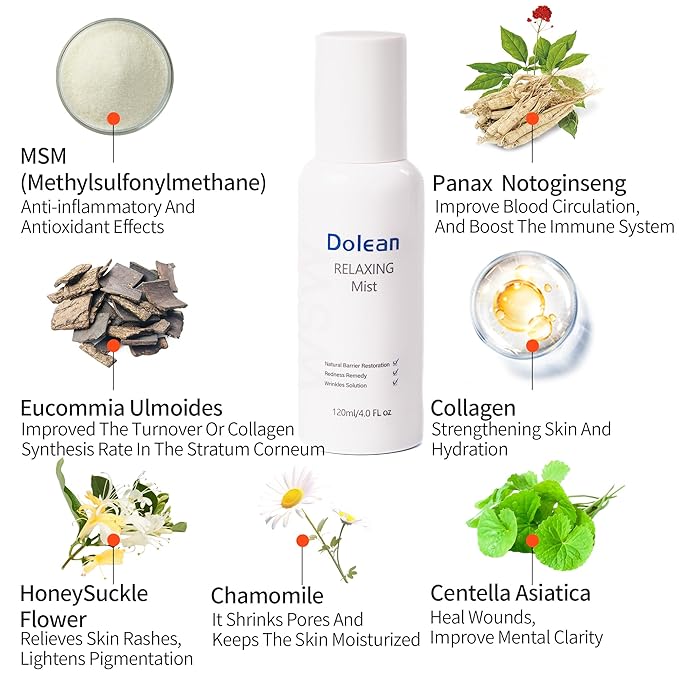 - Daily Facial Mist - Msm✔ + Collagen✔ + Honeysuckle Flower✔ + Centella Asiatica✔ + Panax Notoginseng✔ +Eucommia Ulmoides ✔ = Anti-Inflammatory,Antioxidant Effects, Natural Barrier Restoration, Redness Remedy,Wrinkles Solution, Hydrating