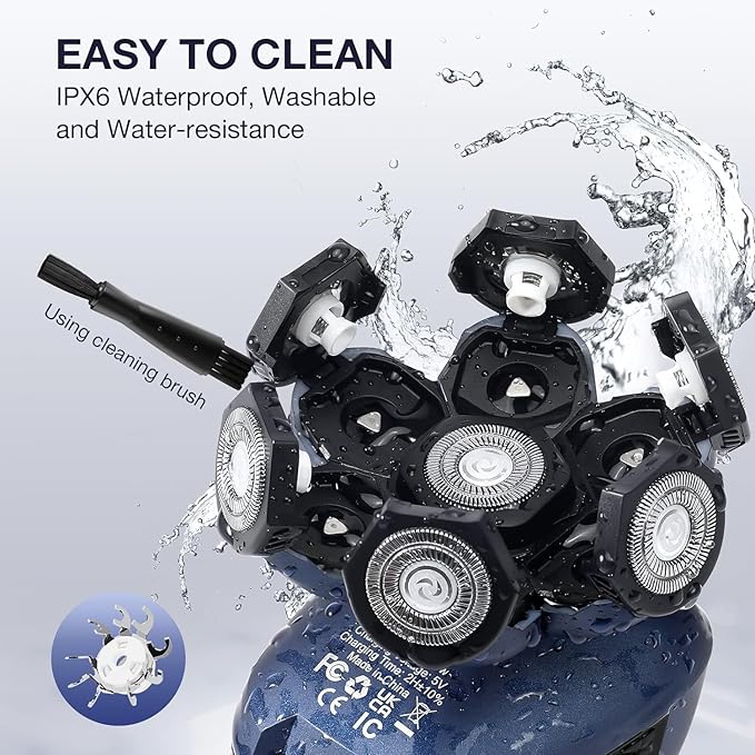 - 【Waterproof and Wet & Dry】If you want a cleaner shaving experience, we recommend you use shaving foam to soften the stubble before using our razor. The whole body of the men shaver is IPX6 waterproof, offering you a comfortable dry shave or a refreshing wet shave with shaving foam. For cleaning, you can use the small brush provided, which is easy to use and easy to clean. This versatile shaving kit makes a great gift for your husband or boyfriend.