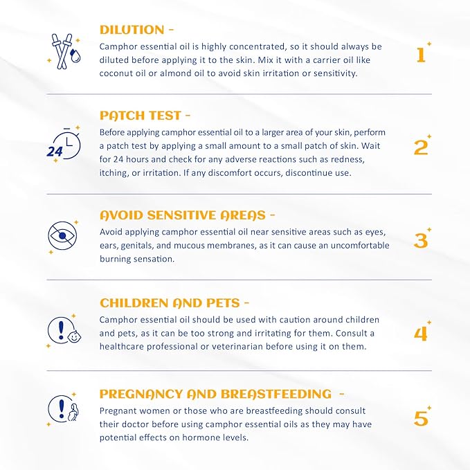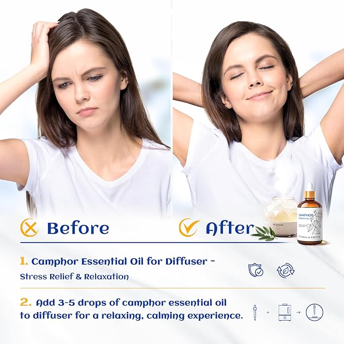 - Ingredient & Aroma: 100% pure camphor essential oil, sourced from the premium camphor tree, contains no additives or diluents and retains the plant's natural components and properties. Fresh and slightly pungent, with a camphoraceous odor