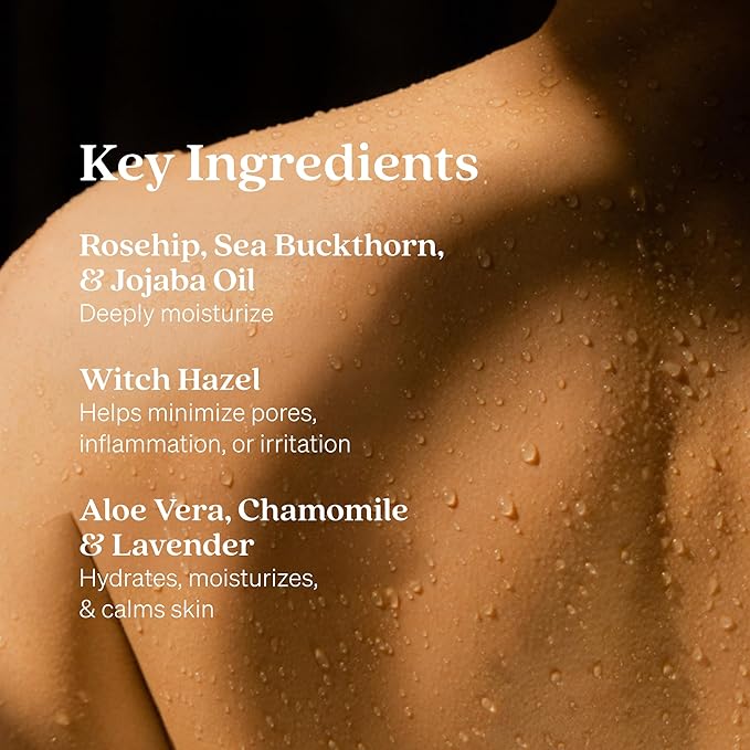 - GENTLE, MOISTURIZING FORMULA: This alcohol-free formula with Witch Hazel helps to minimize the appearance of pores. The Rosehip and Sea Buckthorn oils deeply moisturize, Aloe Vera hydrates, and Chamomile and Lavender gently calm the skin
