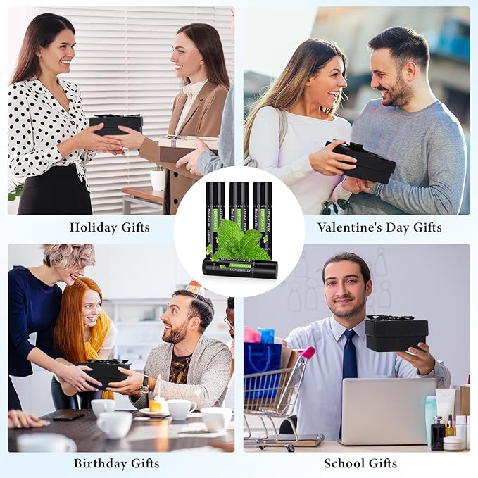 - Lip Balm Gift: there are 4 pieces of lip balm for men women, equipped with a beautifully presented gift box filled with raffia grass; Whether as a treat for yourself or as a thoughtful gift for someone else, it provides a nice idea on Thanksgiving Day, Teachers' Day, Christmas, Nurses' Day and other occasions