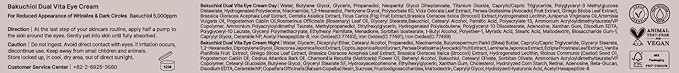 - FINE LINES IMPROVEMENT EYE FIRMING CREAM. Bakuchiol Dual Vita Eye Cream is your solution for fine lines, puffy eyes, sagging skin, and stubborn dark circles around the eyes. Enjoy the added benefit of brightening in this dark circle eye cream, revealing a rejuvenated and youthful look.