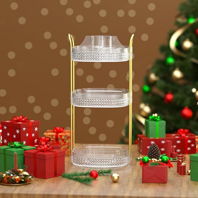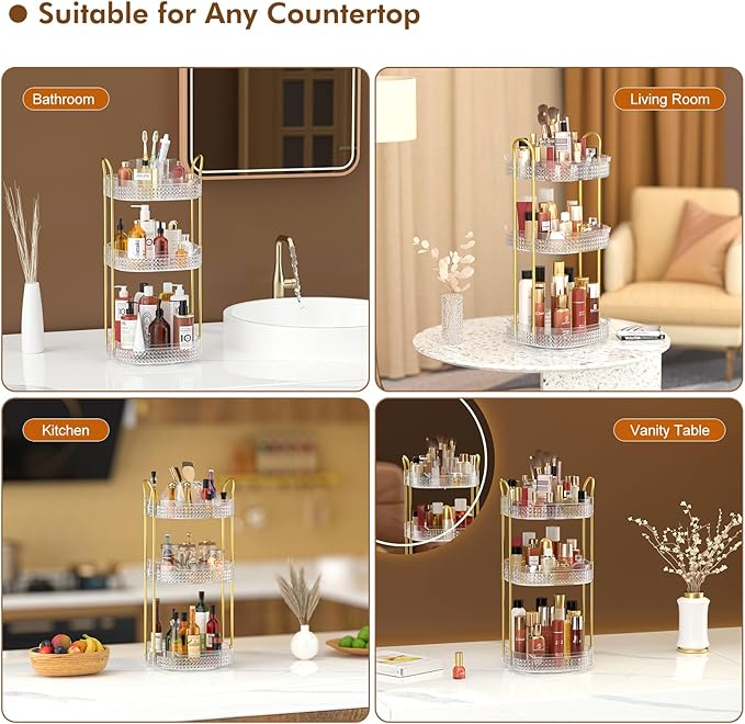 - Washable and Metal Stand:➤Awenia cosmetic organizer with clear acrylic material can be washed or wiped with a damp cloth,cleaned as good as new.Gold stainless steel stand and unique diamond pattern make the perfume organizer more strong,firm beautiful and easy to move. The 360 makeup organizer can be place in Dresser,Bathroom and Kitchen.