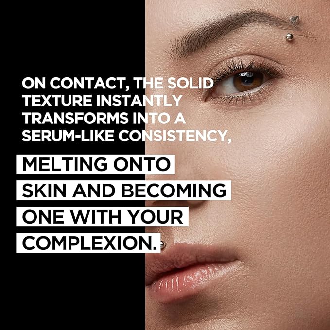 - Multi-Tasking Foundation: combines the benefits of a hydrating, nourishing serum with a glow-enhancing foundation. The transformative, solid texture essentially blends itself, instantly melting into an ultra-smooth, serum-like consistency on contact with skin.