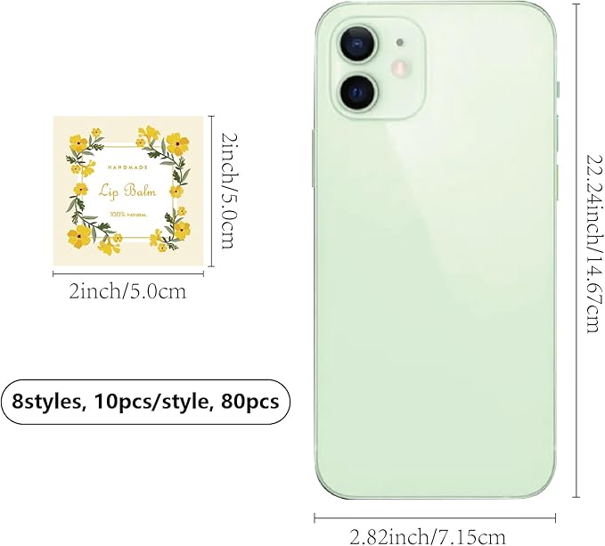 - SIZE: square custom lip balm diy label sticker about 1.96×1.96inch (5x5cm), 8 styles, 10pcs/style, 80pcs/set.