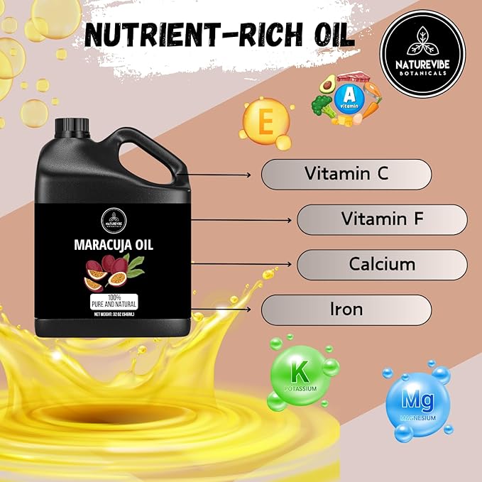 - ✅Naturevibe Botanicals Maracuja Oil 32 Ounces 100% Pure & Natural Cold Pressed Passion Fruit Seed Oil | Premium Grade Oil for Hydrating and Soothing | Body Oil Great for Hair, Skin & Nails (946 ml)