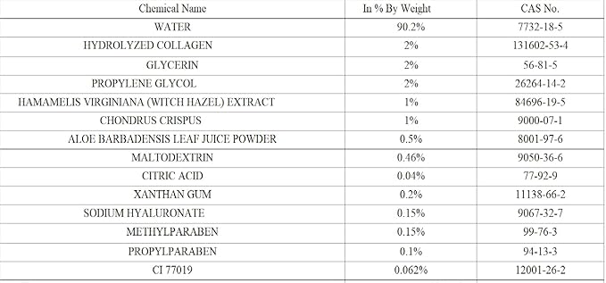 - Our nutrient-filled blend contains a powerful mix of ingredients like mica gold, collagen, castor oil, and Centella Asiatica. It helps hydrate, improve skin elasticity, and moisturize dry skin, leaving it looking plump, radiant, and glowing.
