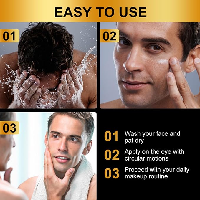 - Light Weight and Gentle - men eye creams are made with quality and sensitivity in mind. Using just a small amount of our concentrated formula will deliver the results you're after, and last longer than the competitors. Your skin will soak in our cream quickly and effectively, without any sticky feeling