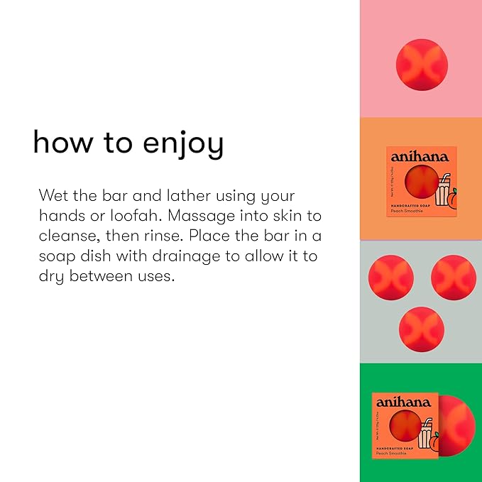 ANIHANA Handcrafted Soap 3 Pack with Coconut Oil, Gentle Cleansing Paraben Free Cruelty Free Refreshing Peach Smoothie Scent 4.23 oz each
