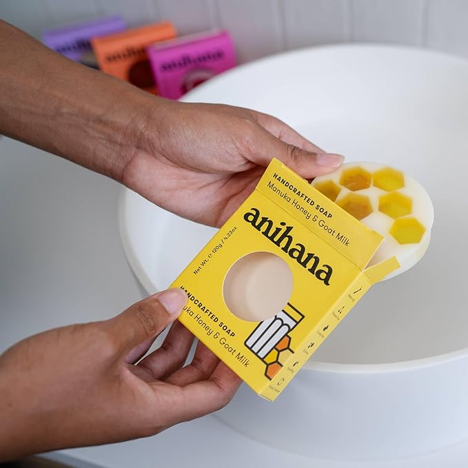 ANIHANA Handcrafted Soap 3 Pack with Coconut Oil, Gentle Cleansing Paraben Free Cruelty Free Refreshing Manuka Honey & Goat Milk Scent 4.23 oz each