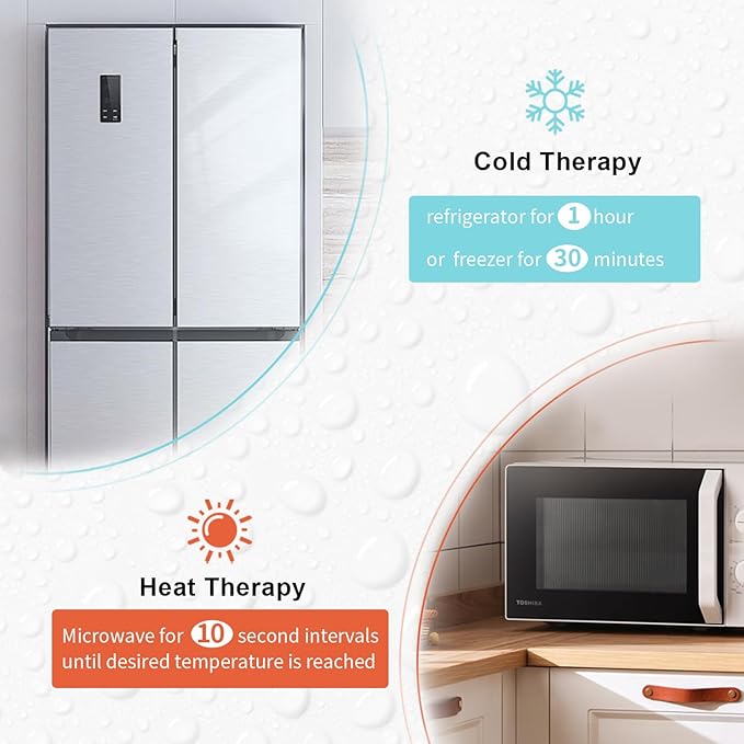 - 【Hot & Cold Therapy】 - Just simply put the ice pack for eyes in the freezer for at least 30 minutes or in the refrigerator for one hour for cold therapy or heat it in the microwave for 10s intervals for heat therapy. Use the plush side for a cool experience or the plastic side for a colder experience. The eye ice mask comes with a resealable bag that helps for healthful storage and prolongs the usage lifetime or isolates the fridge odor. Hand wash, rinse & lay flat to dry.