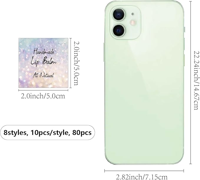 - SIZE: square custom lip balm diy label sticker about 1.96×1.96inch (5x5cm), 8 styles, 10pcs/style, 80pcs/set.