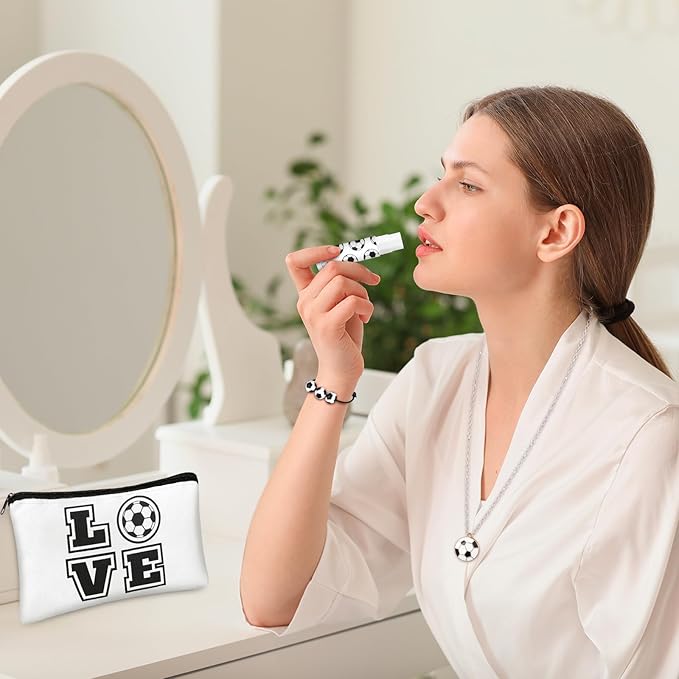 - Sports Team Party Favor: our soccer gifts for girls include 12 pieces of makeup bags, 12 pcs lip balms, 12 pcs lip balm holders, 12 pcs necklaces, 12 pcs mirrors, 12 pcs bracelets, total of 72 pieces, providing variety and reaching the preferences of all team members