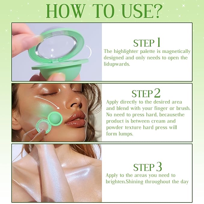 - 【Long Lasting Glow】 Lasting for a whole day that effortless to apply, achieving a diamond-sparkly look, the subtle yet shiny finish of this face highlighter will ensure you stand out in any crowd.