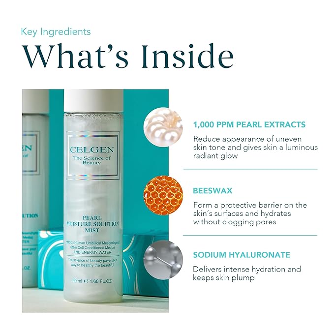 CELGEN] Pearl Moisture Solution Mist – 3-in-1 Toner, Makeup Primer & Setting Spray, Brightening & Hydrating Face Mist, 4.9 Fl. Oz./145ml