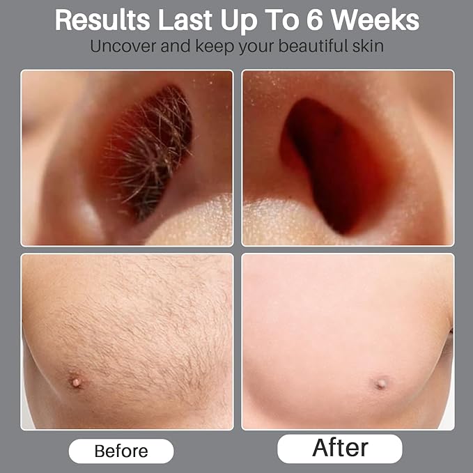 - ๐ช ๐ ๐ฒ๐ป'๐ ๐ฃ๐ผ๐๐ฒ๐ฟ๐ณ๐๐น ๐๐ฎ๐ถ๐ฟ ๐ฅ๐ฒ๐บ๐ผ๐๐ฎ๐น ๐ช๐ถ๐๐ต ๐๐ฎ๐๐๐ถ๐ป๐ด ๐ฅ๐ฒ๐๐๐น๐๐: Designed for men, our hard wax kit grips tough hair for smooth removal. Ideal for areas like nose and coarse hair, it removes 99% in one go. Results last up to six weeks, with finer, softer regrowth
