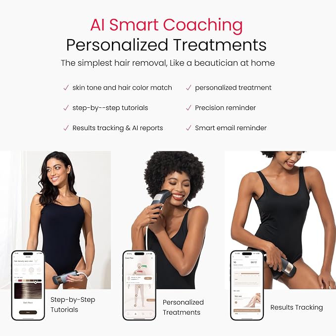 - AI Coaching APP: The i15 pro hair removal for men auto-recommends energy levels and flash modes based on your skin tone, hair density, and treatment area. The personalized treatment plans and instant AI analysis reports for the best results. The step-by-step tutorials and smart email precision reminder ensure hair removal is a breeze