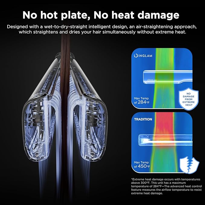 - STRAIGHTEN FROM WET: IG INGLAM Unique harmonica air straightener features with wet-to-dry-straight intelligent design. Linear outlet directional airflow helps to straighten and dry your strands simultaneously, taking the hassle out of styling and creating natural shiny straight hair. Experience more effective salon-worthy results and save time.(Suggest wiping hair oil before use