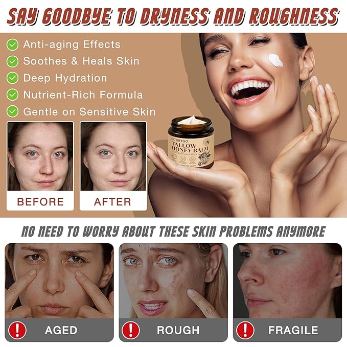 Beef Tallow for Skin,Tallow and Honey Balm,Beef Tallow for Face,Tallow Face Moisturizer,Natural Moisturizer Hydrates,Deeply Nourishes the Skin, Enhances Natural Radiance (1pcs)