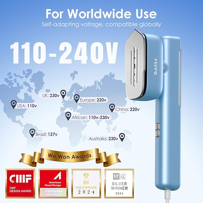 - 【110V-240V Dual Voltage Steamer for Global Travel】 Experience hassle-free ironing worldwide with our clothes steamer featuring advanced 110V-240V dual voltage technology. No adapters neede, Plug and Play, Easy to use. This travel steamer for clothes is your wrinkle-free companion for international trips, business travels, or daily use. Whether you're in Europe, the U.S., or Asia, this travel steamer is Compact enough for carry-ons.