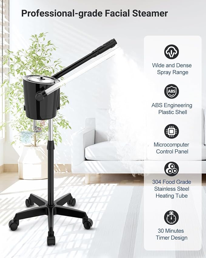 - [Professional Facial Steamer] The Kingsteam facial steamer is designed for both professional salon use and at-home treatments. Its ionic steam opens pores, deeply cleanses, moisturizes, and revitalizes the skin, leaving it soft, hydrated, and more elastic. Perfect for a profession spa experience at home