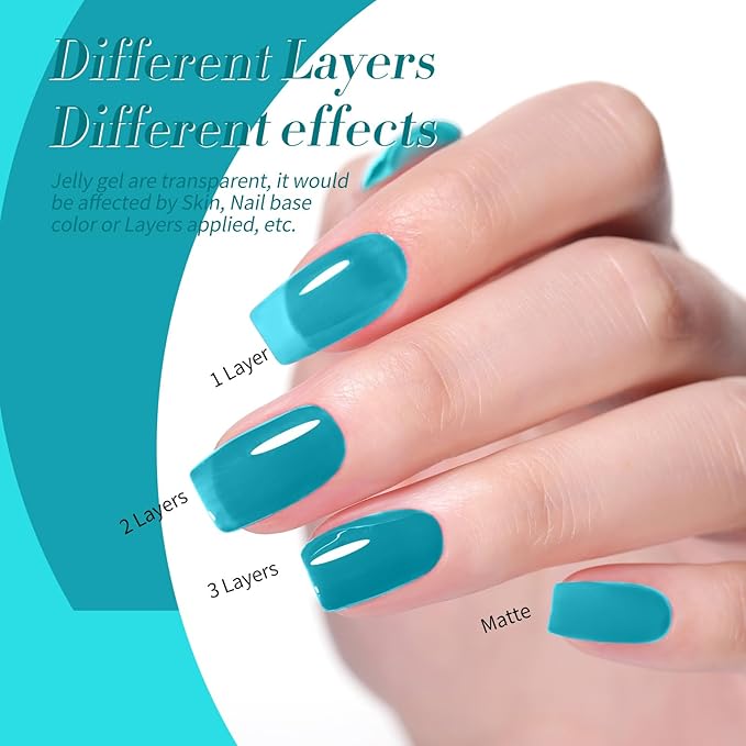 - PACKAGE CONTENTS: 5 Bottles neon jelly gel nail polish with 1pc silver platinum glitter gel polish.Include Blue Green Pink Red Yellow Silver Colors.A set of gel polish allows you to try multiple different effects.You can DIY various nail art styles.Use as regular color gel,blooming gel effect,gradient effect.