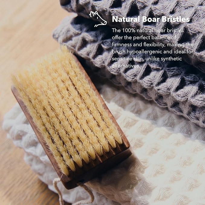 - 🧖♀️ BOAR BRISTLE BRUSH: Experience the perfect blend of firmness and flexibility with this medium-to-hard body brush, made from natural boar bristles. Designed for effective exfoliation and detoxification, it suits all skin types and works beautifully for both wet and dry use, leaving your skin smooth, refreshed, and radiant.