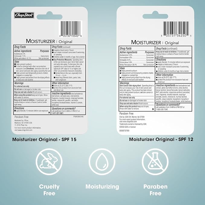 - MOISTURIZING SPF LIP BALM: With ingredients like aloe and vitamin E, the ChapStick Moisturizer 2-in-1 Lipcare SPF formulas deliver sun protection and 8 hours of hydration.