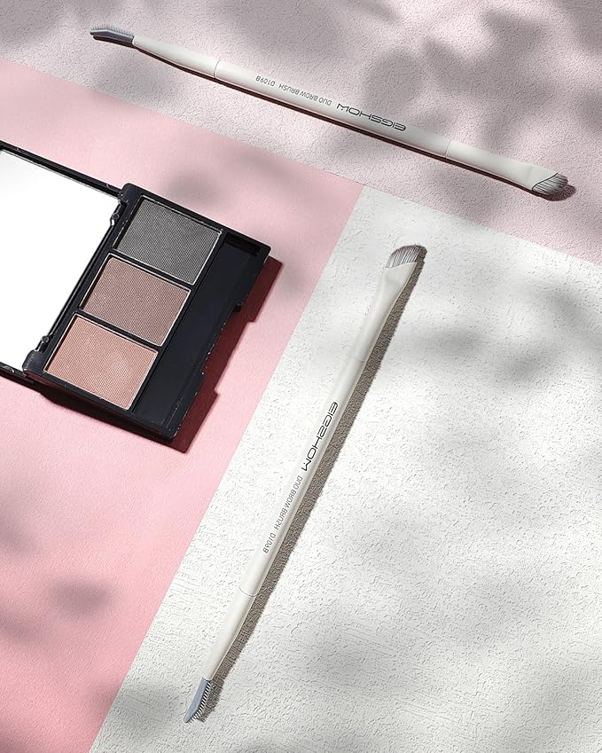 - 𝗗𝘂𝗼 𝗕𝗿𝗼𝘄 𝗕𝗿𝘂𝘀𝗵 𝗗𝗲𝘀𝗶𝗴𝗻: The Duo Brow Brush boasts a two-in-one design that seamlessly combines the precision of an angled with the versatility of a dense, curved brow brush. This ingenious construction allows for effortless grooming and shaping of eyebrows, followed by seamless blending and filling in of gaps or sparse areas, all with just one tool.