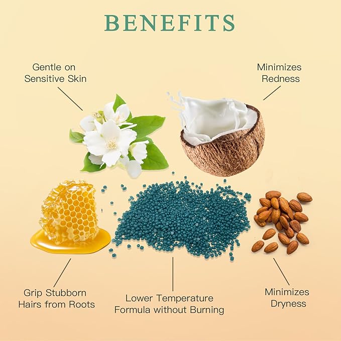 - 【Waxing Beads for Sensitive Skin】BOUVETAN hard wax beans are specifically formulated with hypoallergenic ingredients. They are meticulously designed for sensitive areas hair removal like the bikini line and underarms