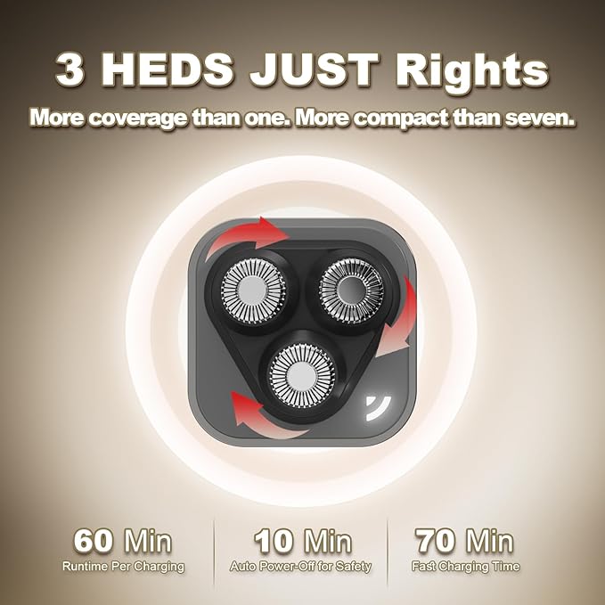 - 【Gentle & Efficient 3-Blade Design】3 floating blades ensure a smooth, gentle shave on face, neck, arms, and legs. A great facial hair remover for women, more efficient than single-head and more portable than 7-head.