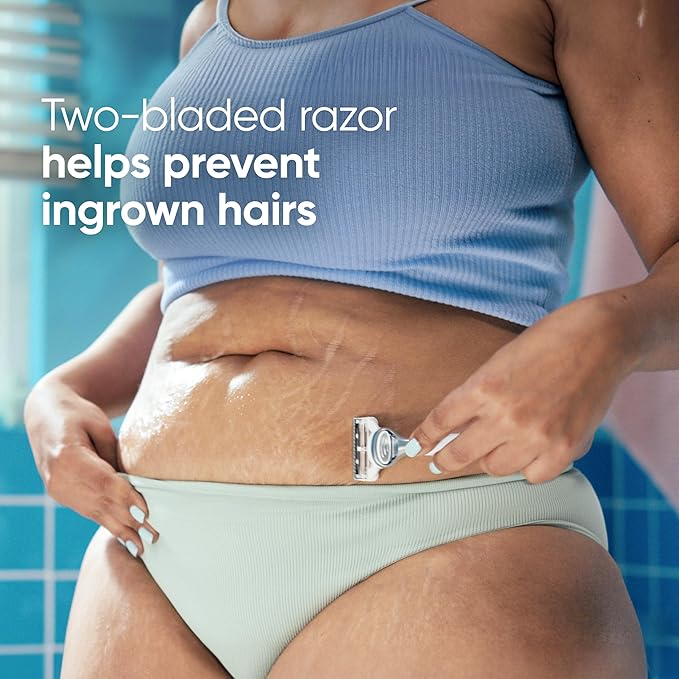 - 2-BLADES OPTIMALLY SPACED specifically designed to protect pubic skin from irritation