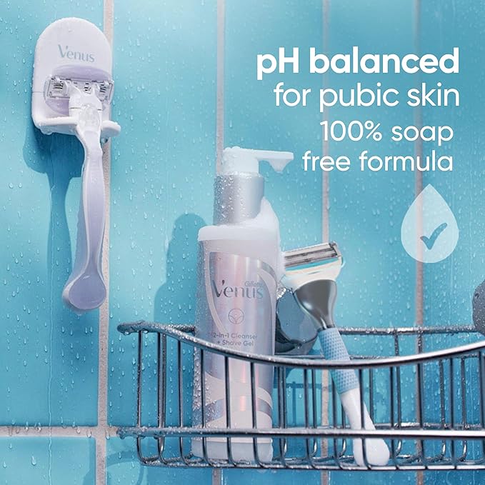 Gillette Venus for Pubic Hair and Skin Shaving Set, Women’s Razor, 1 Handle + 2 Blade Refills + 2-in-1 Cleanser