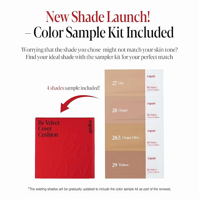 espoir [NEW] Be Velvet Cushion Foundation | Quick and Easy Coverage with Long-lasting Color by Zero Oxidation (#28.5 Ginger Olive, 0.46 Ounce (Pack of 1))