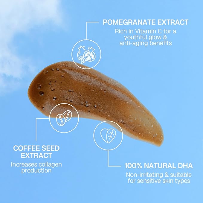 - ๐ก๐ผ๐๐ฟ๐ถ๐๐ต๐ถ๐ป๐ด ๐๐ธ๐ถ๐ป๐ฐ๐ฎ๐ฟ๐ฒ ๐ฏ๐ฒ๐ป๐ฒ๐ณ๐ถ๐๐: Our tanning mousse is infused with natural DHA and enriched with skin-loving ingredients, including chamomile extract, coffee seed extract, and pomegranate extract. This delivers a flawless tan and also nourishes and conditions your skin.