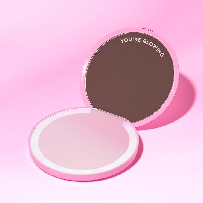 - Glow Wherever You Go - The compact LED mirror is great for on-the-go touch-ups & a daily reminder that You’re Glowing! Finish the routine with the Hyaluronic Acid Glossy Bomb for long-lasting hydration and a juicy, high-shine finish.