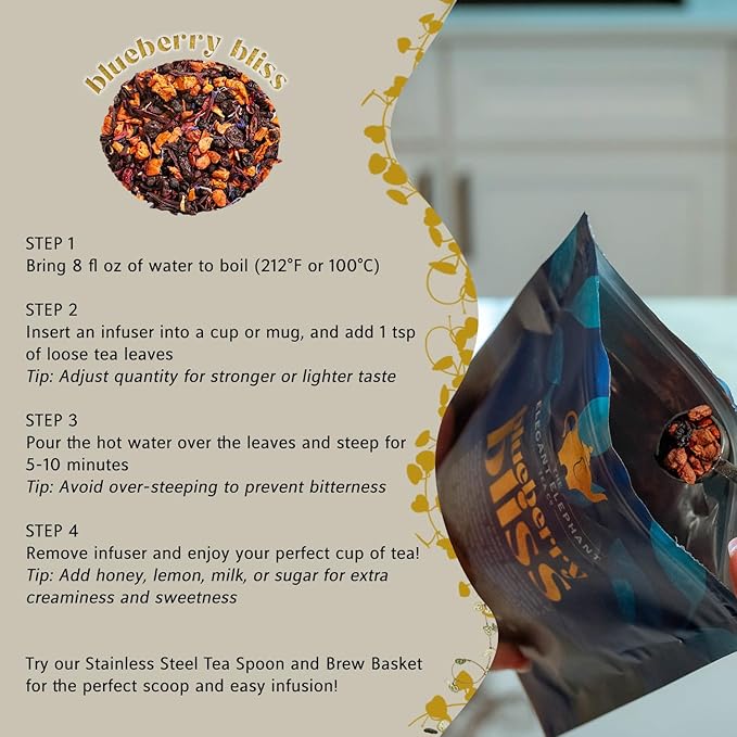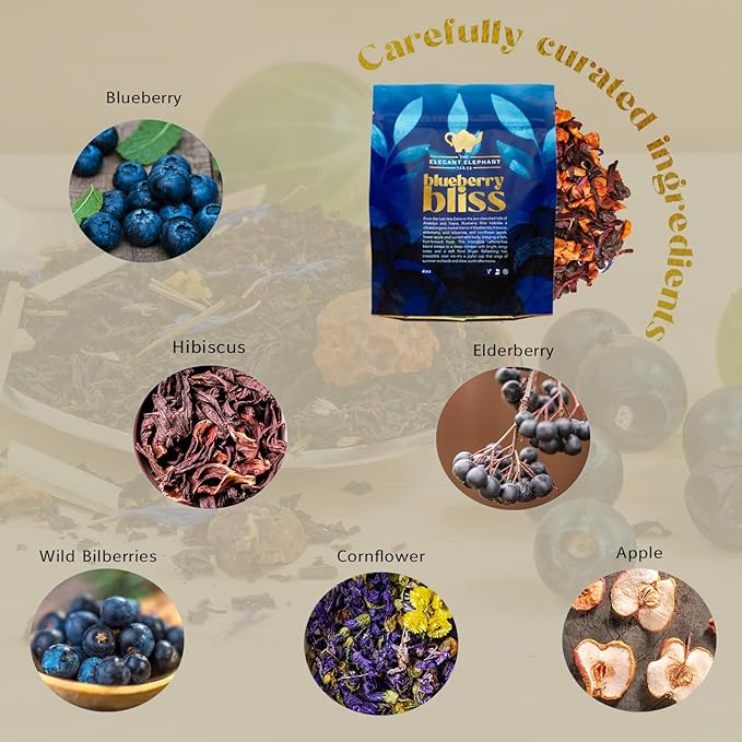- BRIGHT BLUEBERRY BLISS: Juicy blueberry blends with hibiscus, elderberry, apple and more in this antioxidant-rich, fruity herbal tea.