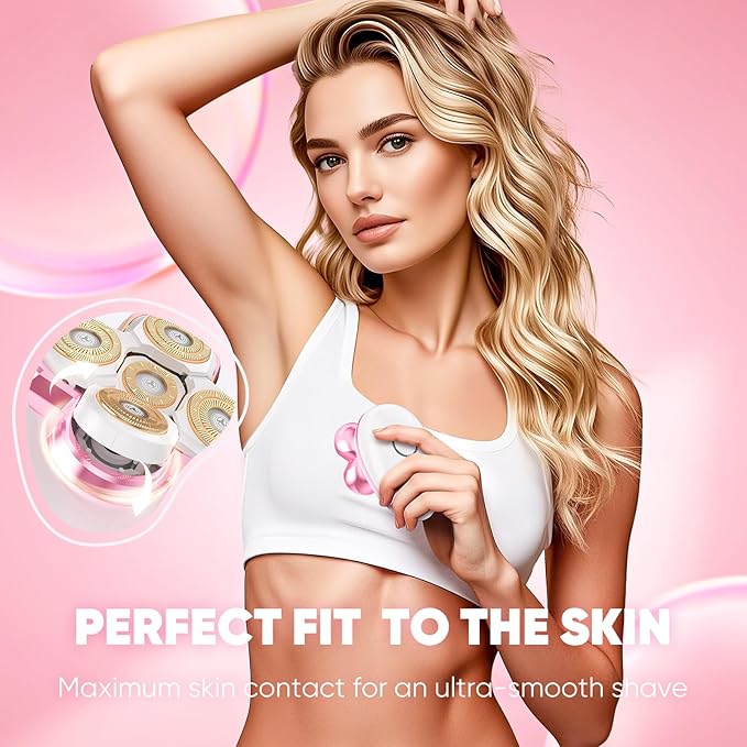 - 𝐒𝐮𝐩𝐞𝐫 𝐏𝐚𝐢𝐧𝐥𝐞𝐬𝐬 & 𝐒𝐦𝐨𝐨𝐭𝐡: Gentle on the skin, this women's electric shaver features hypoallergenic blades and a smooth-touch design that glides effortlessly across sensitive areas, ensuring a comfortable shaving experience without irritation, nicks, or cuts