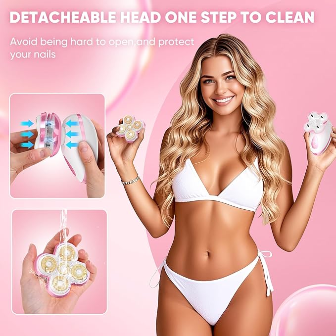 - 𝐈𝐏𝐗𝟕 𝐖𝐞𝐭 𝐚𝐧𝐝 𝐃𝐫𝐲 𝐒𝐡𝐚𝐯𝐞: This electric razor for women can satisfy your dry shave or refreshing wet shave. One step to clean with detachable head, better protect your nails and say goodbye to blade damage. 𝐏𝐥𝐞𝐚𝐬𝐞 𝐝𝐨 𝐧𝐨𝐭 𝐬𝐢𝐧𝐤 𝐢𝐭 𝐢𝐧 𝐭𝐡𝐞 𝐰𝐚𝐭𝐞𝐫
